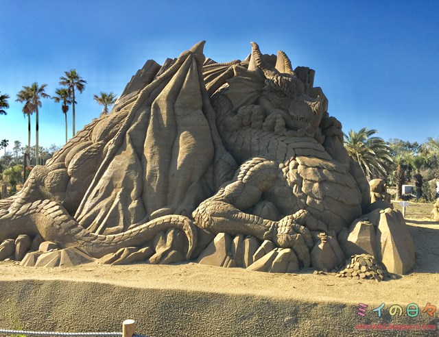 このサンドアートは特殊な加工がしてあるので、雨でも崩れず今後1年間の常設展示を予定しているそうです。
