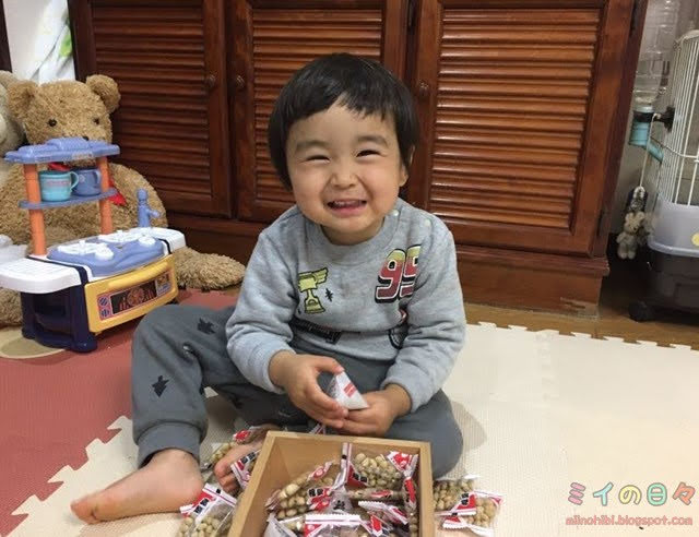 みなさんも、袋ごと豆まきオススメです。